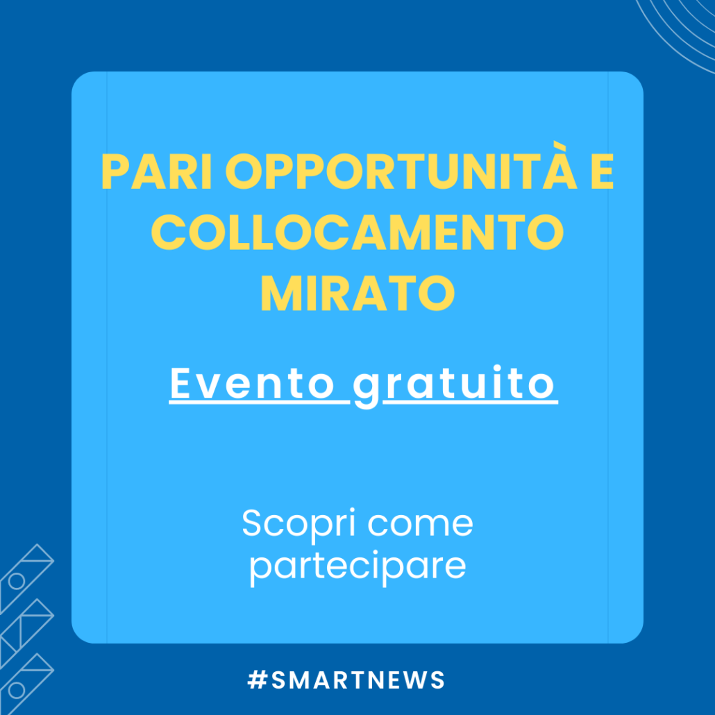 Smart Skills Center, in qualità di sponsor, è lieta di invitarvi a partecipare al convegno di studio gratuito: “Pari opportunità e collocamento mirato: L’inclusione lavorativa delle differenze” , che si terrà il 2 Dicembre 2021, dalle 15.00 alle 18.00, presso la Sala Eventi Bottega del Terzo Settore – Via Trento e Trieste n.18, Ascoli Piceno (AP).