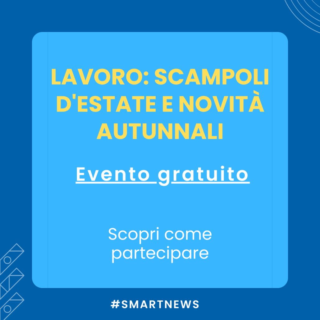Smart Skills Center, in qualità di sponsor, è lieta di invitarvi a partecipare al convegno di studio gratuito: “Lavoro: scampoli d’estate e novità autunnali”, organizzato dall’ANCL di Lecco e dal Consiglio Provinciale dei Consulenti del Lavoro di Lecco.