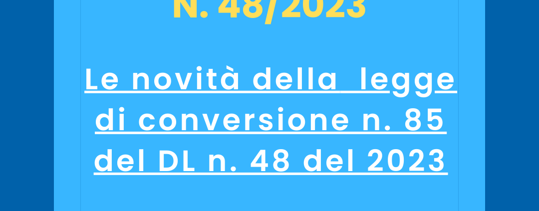 È stata pubblicata in Gazzetta Ufficiale la legge di conversione n. 85 del DL n. 48 del 2023, recante “Misure urgenti per l’inclusione sociale e l’accesso al mondo del lavoro”.
