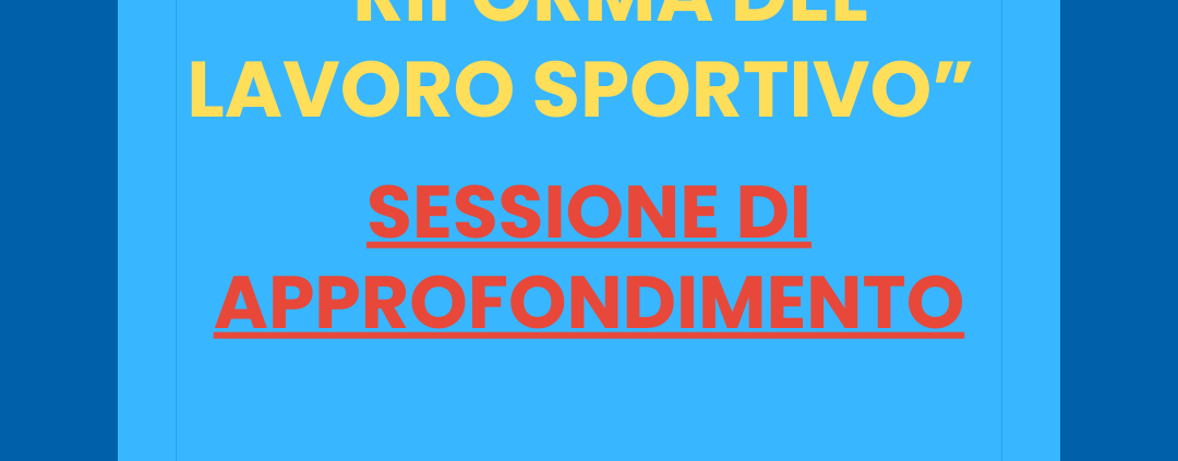 Riforma del Lavoro Sportivo – Sessione di APPROFONDIMENTO