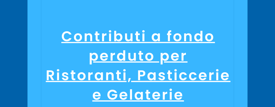 Contributi a fondo perduto per Ristoranti, Pasticcerie e Gelaterie: nuovo bando