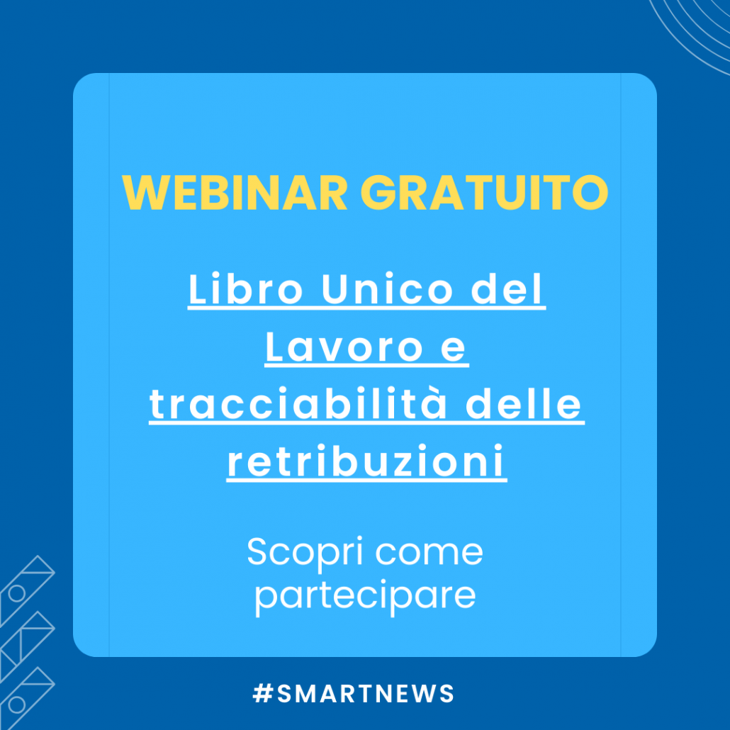 Ti invitiamo a partecipare al webinar: “Libro unico del lavoro e tracciabilità delle retribuzioni”, che si terrà mercoledì 20 marzo dalle ore 14.30 alle ore 16.30: il webinar è gratuito e si terrà sulla nostra piattaforma Smart360.