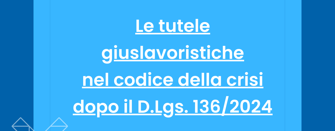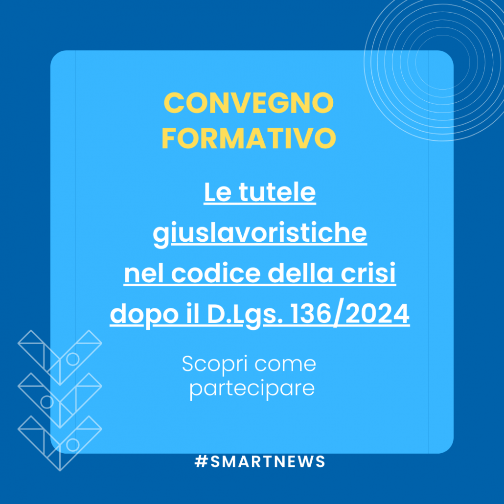 Nuovo Convegno Formativo – “Le tutele giuslavoristiche nel codice della crisi dopo il D.Lgs. 136/2024”