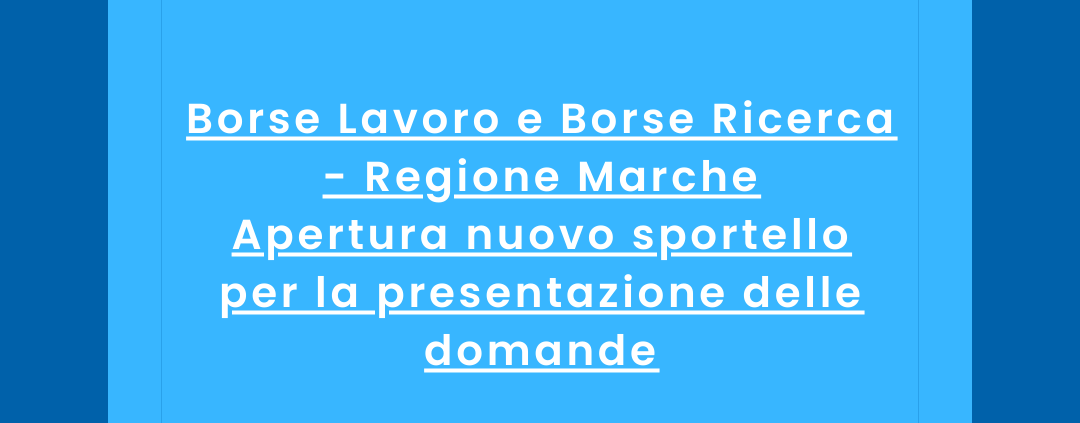 Nuovo Bando Borse Lavoro e Borse Ricerca Apertura nuovo sportello per la presentazione delle domande