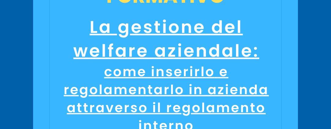 Nuovo Convegno Formativo – “La gestione del Welfare aziendale”