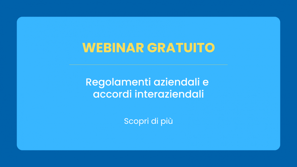 Webinar gratuito: REGOLAMENTI AZIENDALI E ACCORDI INTERAZIENDALI